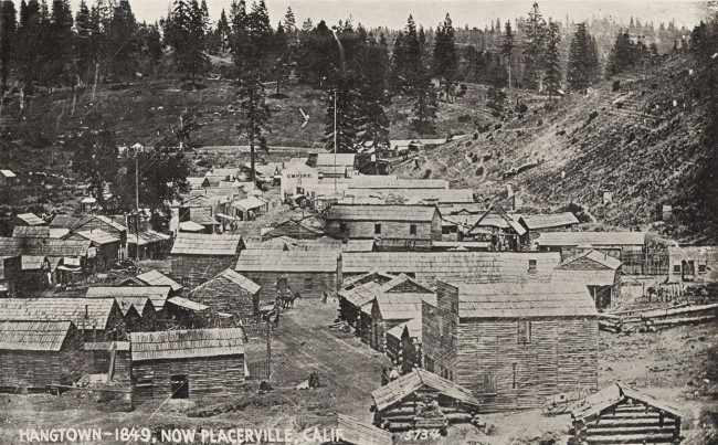 The population of Hangtown continued to grow, reaching several thousand people by 1849. Merchants and entrepreneurs moved in, wives joined husbands, families started, justice was established, and the rowdy element forced to move on. Placer mining remained the towns livelyhood, but Hangtown became more business and family oriented. Soon the residents began desiring an atmosphere of respectability, and to achieve it they renamed their town in 1854 to Placerville, in honor of the gold-bearing gravels that were its economic mainstay.